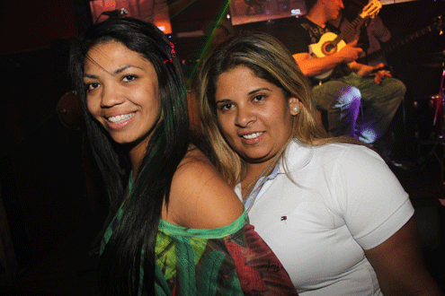 | Ingridi Martins e Sabrina Machado curtindo as animadas noites de pagode do bar Thá na Cuca. |