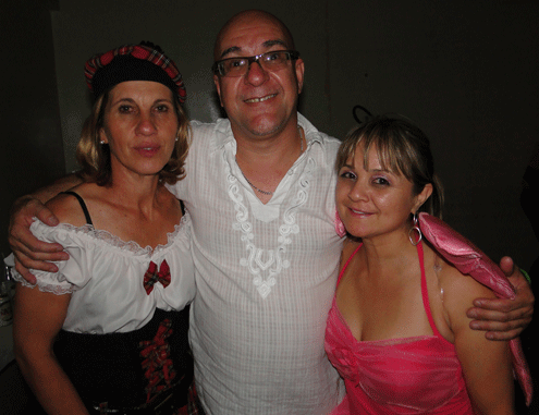 | Mari, o publicitário Kiko Andrade e Silvana na tarde dançante da Sociedade Água Verde, no flash de Jennifer Lima. |
