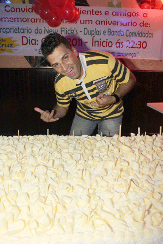| O aniversariante Alcindo Kruz, proprietário do News Flicks, festejou a estreia de idade nova, recepcionando seu círculo de amizades, em bigfesta que teve até bolo gigante. Parabéns!!! |