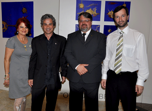 O artista plástico português Seixas Peixoto abriu a exposição “Ouro sobre Azul” (Ensaio sobre a Filigrana Portuguesa) na presença de convidados, imprensa e convidados. A exposição permanece até o dia 22 deste mês, no Espaço Cultural João Roberto de Paula, no Aeroporto Internacional Afonso Pena. A exposição surpreendeu os convidados, que foram brindados pela sensibilidade do artista ao retratar a expressão da filigrana portuguesa – tradicionalíssima em sua cultura – com tanta beleza e riqueza nos detalhes. A exposição conta com 25 peças, nas quais o artista usa detalhes em ouro e o azul como fundo das suas obras. “A série está simplesmente encantadora”, elogiou Kátia Velo, artista plástica de São José dos Pinhais. “Não é fácil viver de arte”, disse Seixas Peixoto, que revelou que irá organizar para 2014 uma exposição sobre futebol. “Um tema nada conhecido”, brincou ele, após agradecer cada uma das empresas e pessoas que o ajudaram a realizar a exposição, e pediu para a Secretaria Municipal de Cultura apoiar, cada vez mais, os artistas locais. De acordo com Elza Delage Moro Zétola, presidente do Comitê de Geminações Leopoldo Scherner de São José dos Pinhais, entidade que intermediou a vinda do artista para o município, a exposição já faz parte das comemorações pelos 15 anos de existência da entidade e, também, dos 25 anos de carreira do artista. O superintendente da Infraero, Antonio Pallu, disse que é um orgulho receber a exposição, dando, não só a oportunidade aos cidadãos são-joseenses de prestigiarem o belíssimo trabalho do artista, mas também a todos os usuários do aeroporto, e finalizou elogiando a exposição. “Esta é, provavelmente, a mais bela exposição que já recebemos aqui”, disse. “Estamos fazendo um esforço incansável para tentar ir à direção da arte de maneira organizada”, argumentou o secretário municipal de Cultura, Christian Bundt. “Vamos nos organizar para trazer a população para prestigiar esta exposição”. Participaram da abertura da exposição o presidente da ACIAP, Auro de Paula; a secretária de Meio Ambiente, Edilaine Vieira, membros do Comitê de Geminações de São José dos Pinhais, entre outros convidados. Fotos: PMSJP.![]() |