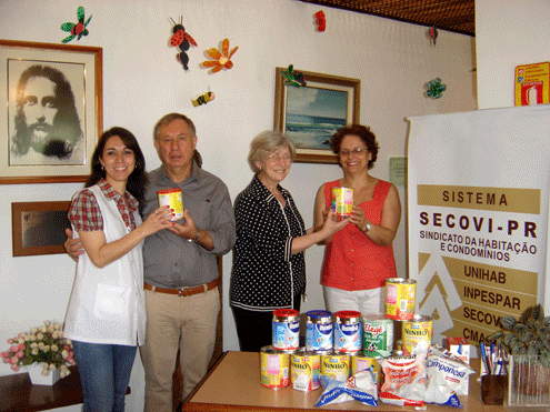 | O Secovi – PR, juntamente com entidades vinculadas, realizou a doação de 176 latas de leite em pó arrecadadas no jantar em comemoração ao Dia do Síndico. A instituição que recebeu os alimentos foi o Lar Escola Dr. José Leocádio Correia, no bairro Santo Cândida, em Curitiba. A entidade atende 160 crianças com idade entre 4 meses e 5 anos, que permanecem no Lar Escola das 7h30 às 17 horas, e moram na região e nos municípios de Colombo e Almirante Tamandaré. Micheli Naconaski, diretora do lar, reforça a importância desse tipo de doação para o Lar Escola que sobrevive de doações. “Isso nutri o corpo e o espírito das crianças. O Lar Escola é feito de voluntários como o Secovi-PR, que não tinha parceria conosco, mas mesmo assim resolveu ajudar”, enfatiza. Para a presidente do Secovi – PR, Liliana Tavarnaro, o gesto de responsabilidade social, enquanto sindicato, é gratificante, pois é possível ver o resultado do trabalho realizado. “Agradecemos aos síndicos, aos condôminos e diretores das entidades vinculadas que contribuíram e participaram dessa ação”, completou. Na foto: Ao centro, a presidente do Secovi – PR, Liliana Tavarnaro, entrega uma das latas de leite em pó. |