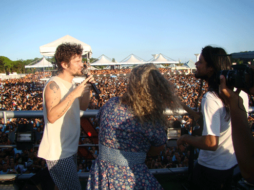 | A banda Eva foi uma das atrações do Holiday Folia, evento que aconteceu no Estacionamento do Wet’n Wild, em Salvador. A apresentação de Saulo Fernandes e sua banda serviu para esquentar ainda mais os foliões que escolheram a festa para curtir o feriado de muito sol na capital baiana. Mesmo com um show mais curto, de 1h30min, já que ainda tinham outras atrações para se apresentar, o Eva agradou em cheio com o repertório escolhido. O Grupo começou com o hit “Circulou”, que promete ser uma das grandes sensações do verão baiano, e seguiu com as animadas “Rua do Sossego” e “É do Eva”. No momento reggae, que começou com “Reggae do Porto”, Saulo convidou os cantores Tati e Rafa da banda Chimarruts, e juntos fizeram uma impecável participação com “Do lado de cá” e “Versos simples”, canções da banda de Porto Alegre, além de “One Love” de Bob Marley. Além de toda a animação, Saulo também desacelerou com a romântica “Anjo” e foi encerrando com “Agradecer”, quando contou com uma breve participação do líder timbaleiro, Denny, que subiu no trio do Eva para fazer uma entrevista descontraída com Saulo. E foi com o hino do Bahia que o Eva encerrou a sua participação na grande festa com muita alegria e com o coro de “mais um”. Fotos de Flávia Uzêda. |