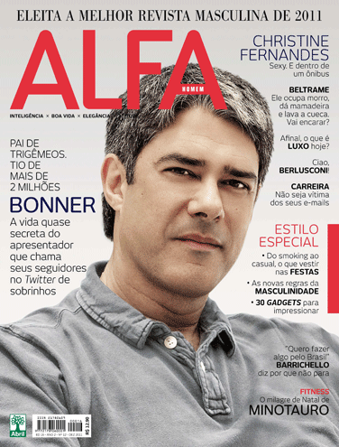 | A edição de dezembro da revista ALFA traz um perfil de William Bonner. Apontado por uma pesquisa do Ibope como o jornalista mais confiável do Brasil, há 11 anos à frente do telejornal de maior audiência do país, Bonner é muito pouco conhecido apesar de entrar diariamente em nossas casas. É por meio do Twitter que ele revela seu lado palhaço e bonachão aos 2,3 milhões de “sobrinhos” que o seguem, já que ele se intitula “o tio” ou “tio velhinho”. “Sempre perguntam qual é o William verdadeiro. É uma pergunta tola. Eu não vou agir com você como ajo com a minha mulher ou como ajo com um delegado de polícia. Todos são verdadeiros. Cada um dentro do seu ambiente e dentro das circunstâncias que cercam aquela interação”, disse ele à repórter em uma das conversas que tiveram. A reportagem assinada por Aline Salcedo, repórter que teve vários encontros com Bonner ao longo de sua carreira, traz ainda depoimentos de personalidades como Boris Casoy e José Bonifácio de Oliveira Sobrinho, o Boni. “Foi a Lou, minha mulher, quem o descobriu na TV Bandeirantes. Ele apresentava um jornal e ela achava sua voz bonita. Achei que era só dar uma arrumada no cabelo”, relembra Boni. Ele contou a ALFA que a decisão de tirar Cid Moreira e Sérgio Chapelin da bancada, em 1996, para serem substituídos por Bonner e Lilian Witte Fibe, em princípio, não o agradou. “Ele (Evandro Carlos de Andrade, diretor de jornalismo na época) não conhecia nada de televisão. Nada contra mudanças, mas ele quebrou de uma hora pra outra um hábito de mais de 20 anos, e a audiência do Jornal Nacional caiu de 45 pontos para 33 no Ibope”, disse. Hoje, Boni reconhece que o casal William Bonner e Fátima Bernardes é a cara do programa. “Demorou, mas deram certo. Eu sempre fui contra casal trabalhando junto. É como ter o mordomo casado com a cozinheira”, compara. Agora, finalmente a parceria (na TV), chegará ao fim. Fátima deve ganhar um programa e Bonner terá a companhia de Patrícia Poeta na bancada. É esperar o resultado do Ibope. |