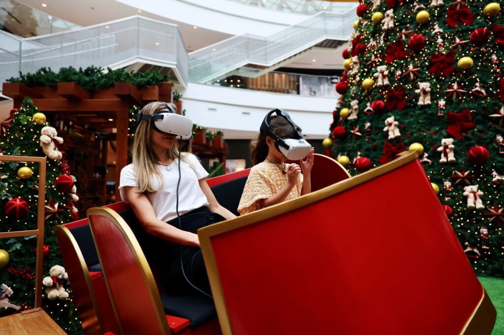 Outro destaque da decoração é um simulador de trenó onde é possível “fazer um voo” com as renas e entregar os presentes de Natal junto com o Papai Noel. A atração se torna imersiva com o uso de óculos de realidade virtual, fazendo com que os clientes se sintam em uma verdadeira aventura.