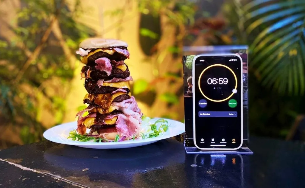 Você consegue comer um sanduíche com seis hambúrgueres de costela, queijo cheddar, bacon, alface americana, tomate, cebola roxa, molho barbecue e pão brioche em até sete minutos? Esse é o novo desafio proposto pelo Garden HamBargueria, estabelecimento localizado no São Francisco, em Curitiba. Até o dia 31 de maio, clientes que conseguirem completar o desafio de comer o Challenge Tower (R$ 62,90) não pagam pelo hambúrguer e ainda ganham um voucher de R$ 200.