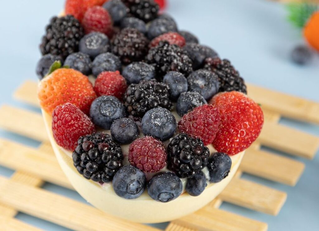 - Amora Quatro Leites (casca de chocolate branco, recheio de bolo black, 4 leites cremoso e geleia de frutas vermelhas, decorado com amoras);