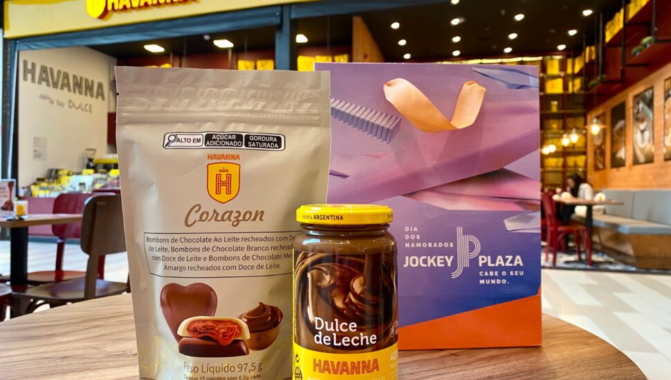 Desde o dia 1º de junho, o shopping Jockey Plaza está com a campanha de Dia dos Namorados “Cabe toda a doçura desse amor”. Com R$ 600 em compras, os clientes poderão trocar suas notas por um kit da tradicional marca argentina de alfajores, cafés e doce de leite Havanna, composto por um pacote de bombons pouch mini corazon misto e um pote do famoso doce de leite Havanna 420g.