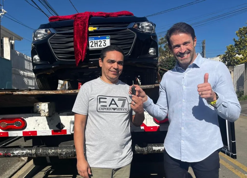 Na última terça-feira (11), o vice-presidente do Condor e ex-piloto de Fòrmula 1, Ricardo Zonta, entregou o primeiro carro da Campanha “50 Anos Premiado Condor“. Ele levou o veículo até a casa do ganhador, Gerivaldo Alves Rodrigues, cliente da loja de Colombo.