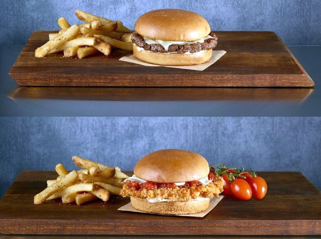 - Bacon Cheeseburger – burger de carne, com queijo e bacon.
