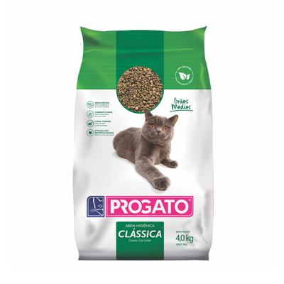 ProGato Clássica é a areia higiênica comum e mais econômica da linha ProGato. Sua versão Grãos Médios é composta por granulados com textura, cor e cheirinho semelhantes aos da natureza, porém em um tamanho maior, o que dificulta o carregamento dos grãos, ajudando a manter o ambiente mais limpo. ProGato Clássica retém a urina e umidade das fezes, formando torrões que facilitam a remoção e a limpeza da bandeja sanitária. Além disso, sua fórmula atóxica e com pH neutro garante segurança e bem-estar ao seu gato e sua família.