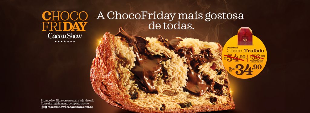 Olha essa delícia de panetone passando na sua telinha. Que tal aproveitar esse super desconto da Cacau Show? De R$ 54,90 por R$ 34,90.
