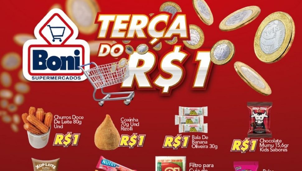 A rede de supermercados Boni promove nesta terça-feira, nas suas unidades em Curitiba e região metropolitana, a “Terça do R$ 1”. São diversas ofertas por apenas R$ 1, entre hortifrutigranjeiros, doces, sobremesas, itens de limpeza higiene e alimentação.