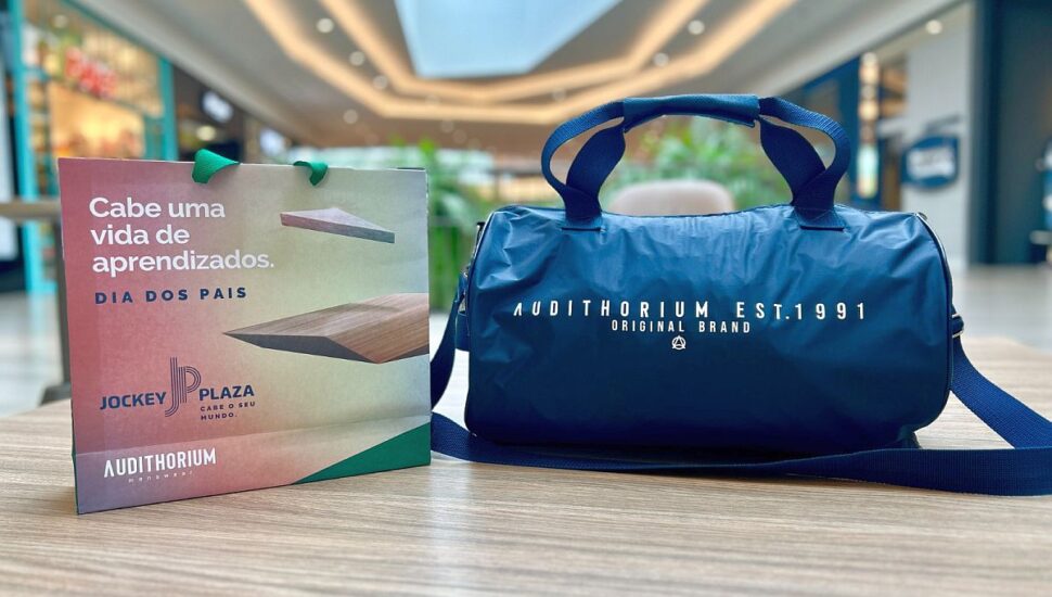 O Jockey Plaza Shopping apresenta a campanha de Dia dos Pais “Cabe uma vida de aprendizados”. Com R$600 em compras, os clientes poderão trocar suas notas por uma bolsa esportiva Audithorium. A campanha é válida para compras realizadas no período de 1 a 13 de agosto, enquanto durar o estoque das bolsas.