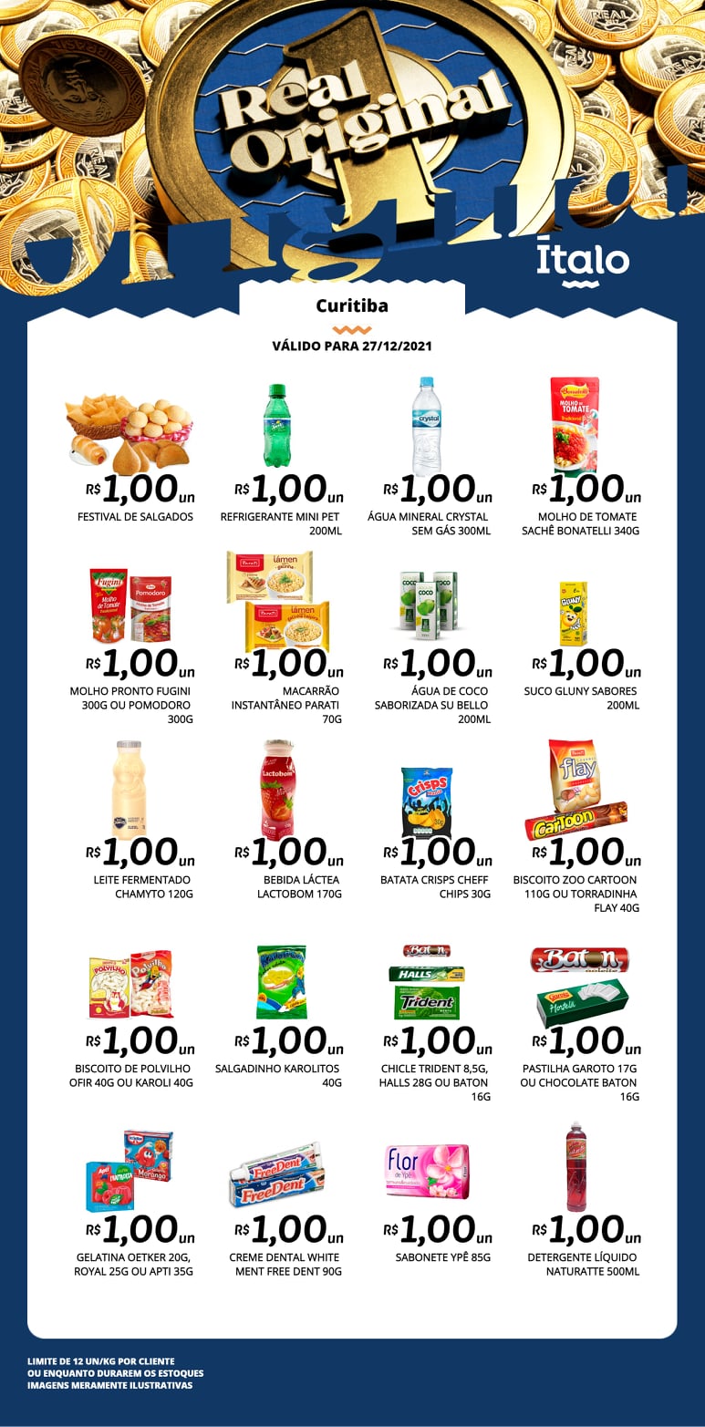 A economia no bolso é sempre uma boa alternativa. Pensando em atrair consumidores para a reta final do ano, o supermercado Ítalo no bairro Atuba, em Curitiba, optou por oferecer vários produtos a R$1. A promoção é válida para esta segunda-feira (27). Nesta terça-feira (28) foi dia do Supermercado Boni fazer a promoção do 1 real.