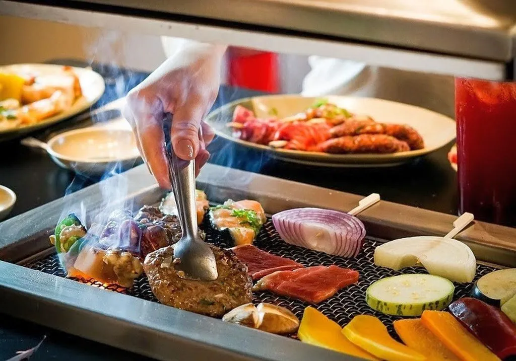 No restaurante, cada mesa possui uma grelha e o cliente prepara o tradicional churrasco japonês de acordo com o seu gosto. São dezenas de opções, com cortes de carnes, como ancho, picanha, kamá de salmão, contra filé, costela, brisket angus, entre outros.