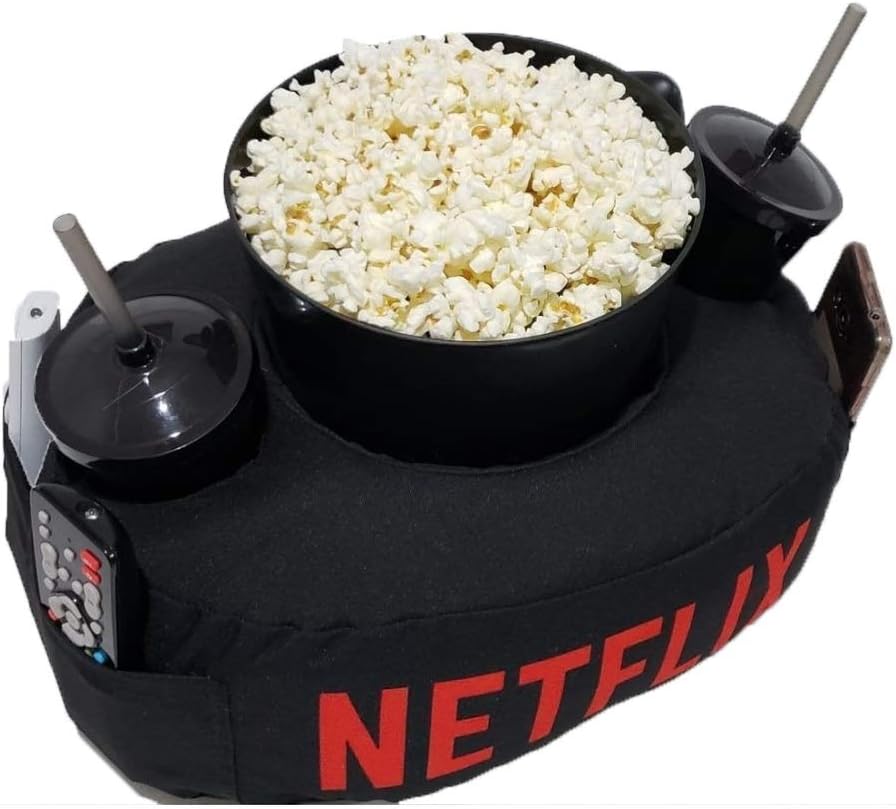 Kit Almofada C/Porta Pipoca Balde +2 Copos Netflix C/Bolso, Presente Dia dos Namorados