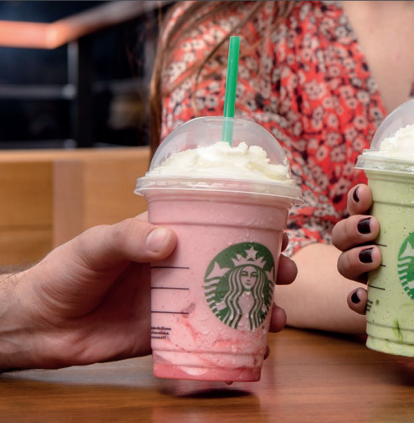 Em dias quentes, é o delicioso Frappuccino, uma bebida original da Starbucks. É um gelado de café com chantilly em cima. Na loja de Curitiba você encontra a versão com café e outra sem café.
