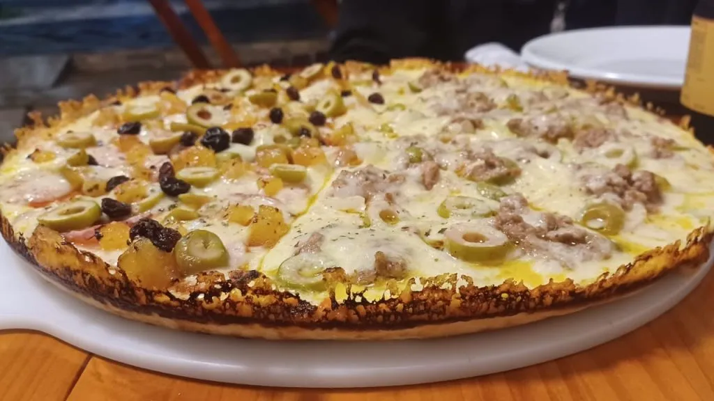 Pizza cubana: pepperoni com abacaxi e uva passa