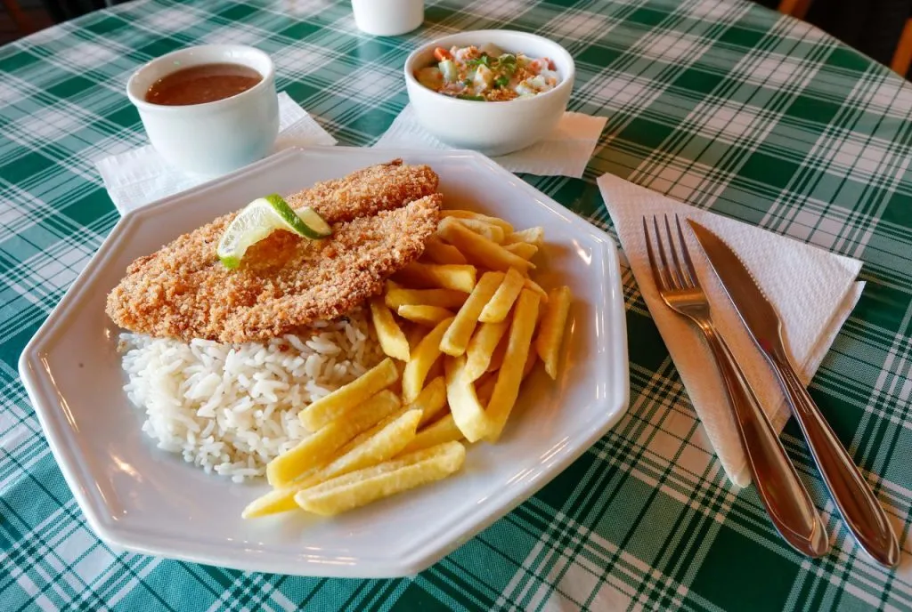 E é diferenciado mesmo. O Rango Barateza esteve no Bistrô Armazém na última semana e provou o filé de tilápia empanado. O prato chegou rapidamente à mesa, tudo bem quentinho. Filé bem crocante, num tamanho generoso, com arroz soltinho, feijão bem temperadinho, batata frita sequinha e numa cumbuca à parte, uma seleta de legumes bem saborosa.