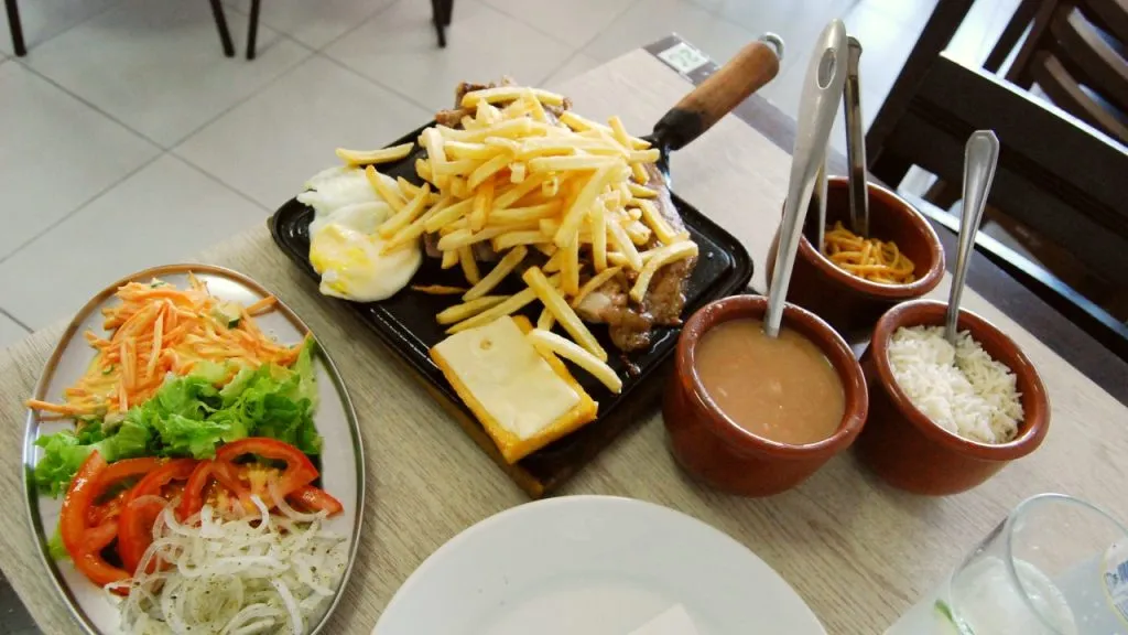 Com tantos acompanhamentos, dá para fazer algumas extravagâncias. Provar o macarrão com o feijão, usar o molhinho da salada para dar um temperinho a mais no arroz. Mesmo que a chuleta seja a protagonista, não há como deixar qualquer outro acompanhamento como mero coadjuvante. Todos são parte da ‘orquestra’ que compõe a musicalidade do prato.