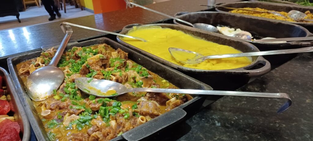 Pela disposição do buffet, pela organização, pelo cuidado no preparo, a gente percebe que há carinho na preparação toda. O que faz o tempero especial? Maria conta toda orgulhosa. “Aqui não trabalhamos com produtos industrializados. Não tem pozinho, nem ‘quadradinho’, nem nada. Tem gente que almoça toda semana aqui há 16 anos, e ainda vem no fim de semana com a família. Atingimos a parte mais importante das pessoas, que é a memória”, conta a empresária. Parte da fidelidade também vem pelo preço justo: R$ 24,90 o buffet livre de segunda a sexta, ou R$ 67,90 o quilo. Aos sábados, R$ 26,90.