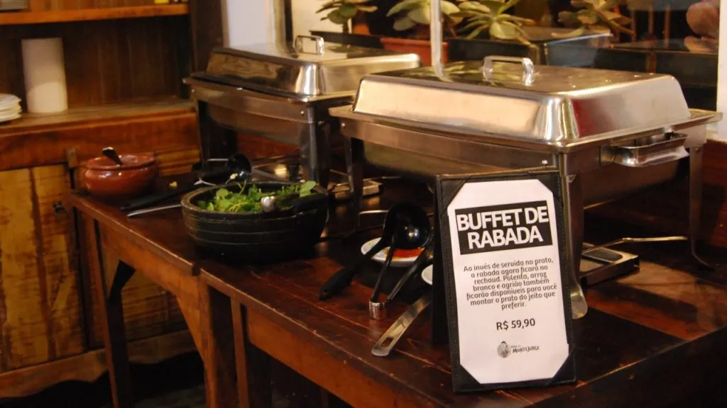 Visitei o bar numa quinta-feira, dia consagrado da rabada ao molho com polenta. Basta chegar ao bar e sentir o aroma da cozinha para saber que o que se cozinha e se prepara ali é coisa fina. Apesar do bar oferecer buffet livre de rabada, com polenta cremosa, agrião e arroz por R$ 59,90, escolhi o prato que mais sai da casa: o queridinho escondidinho de rabada por R$ 30.