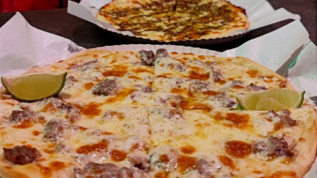 Cada Manaeesh tem 25 cm de diâmetro, um bom tamanho para comer individualmente. Entre os sabores mais vendidos, o de carne e queijo (R$ 30) e zaatar e queijo (R$ 25). Há também outros cinco sabores: só de zaatar (R$ 22), queijo (R$ 24), pimentões (R$ 24), carne (R$ 28) e pimentões e queijo (R$ 26). Os sabores com carne, feitos com o corte da fraldinha e moída três vezes, são acompanhados com um pedaço de limão.