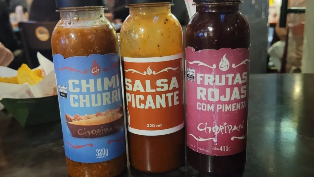 A casa oferece oito sabores de linguiça diferentes, todas de fabricação e receita próprias. O molho chimichurri é receita original e secreta da casa. “A mistura de temperos é feita por um argentino de Córdoba, especialista. Todos os nossos molhos, ele quem desenvolve. Experimentamos muito, até chegarmos a essa receita. O molho fica tanto nas mesas, como também na cobertura do nosso choripan tradicional”. revela João.