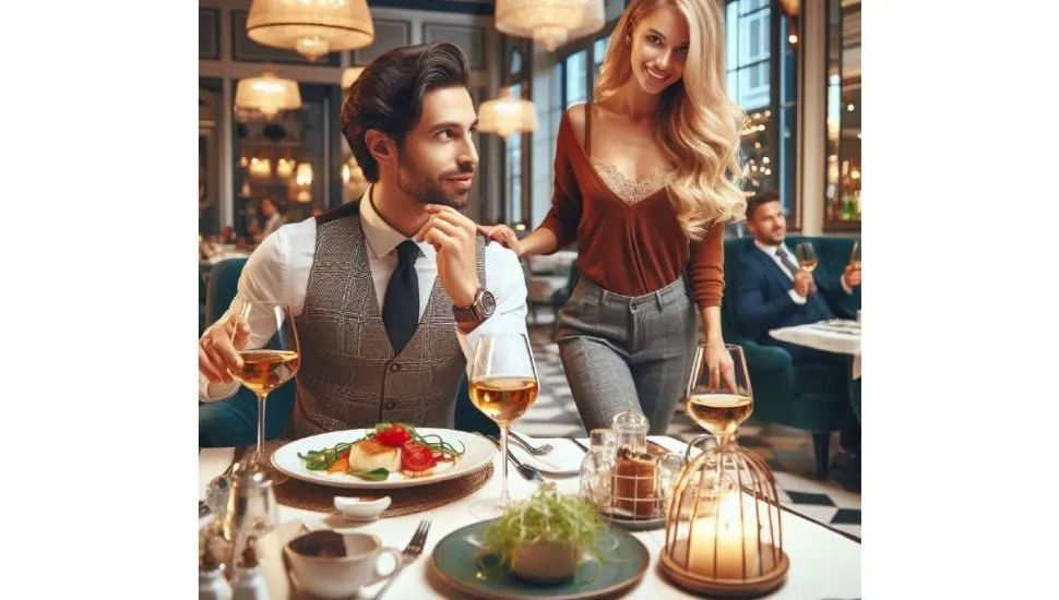 O casal está jantando num restaurante finíssimo, quando de repente, uma loira maravilhosa se aproxima da mesa, tasca um tremendo beijo na boca do marido e vai-se embora, sem dizer uma palavra.