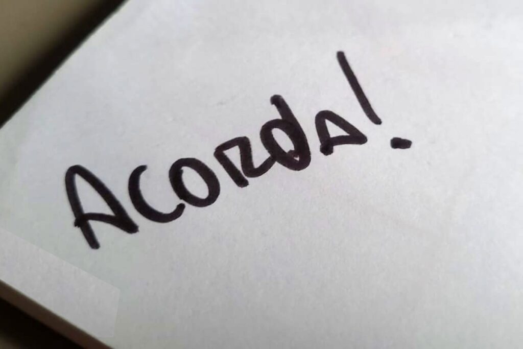 Entretanto, o homem lembra-se que no dia seguinte tem uma reunião muito cedo no escritório, (e como precisava se levantar cedo) resolve pedir à mulher para o acordar, mas (para não dar o braço a torcer!!) escreve num papel: