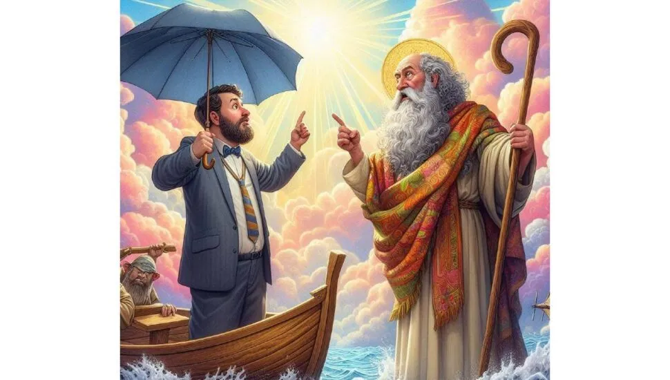 Aí, São Pedro, de saco cheio, se mete na conversa: