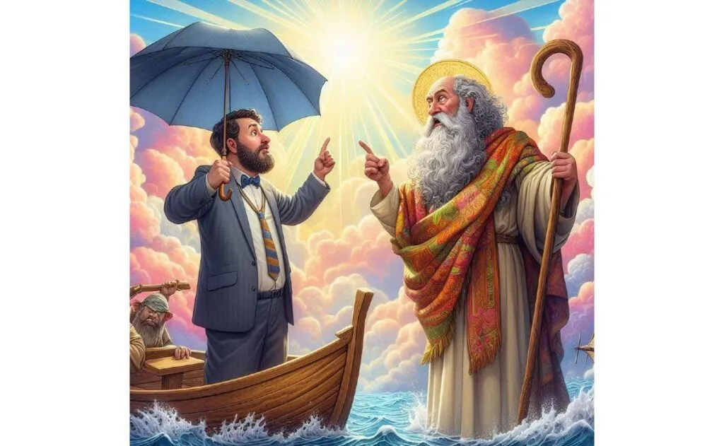 Aí, São Pedro, de saco cheio, se mete na conversa: