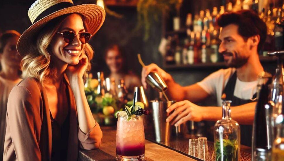 Ela começa a bebericar o uísque e o barman, continua firme com os olhos em cima dela.