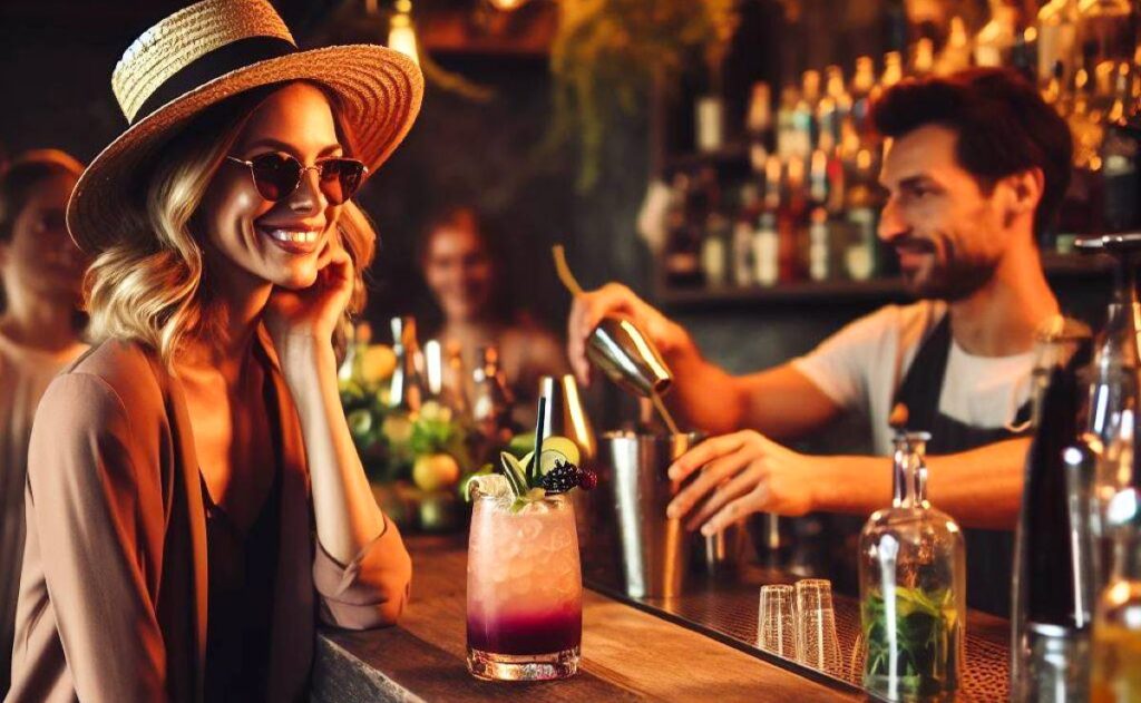 Ela começa a bebericar o uísque e o barman, continua firme com os olhos em cima dela.