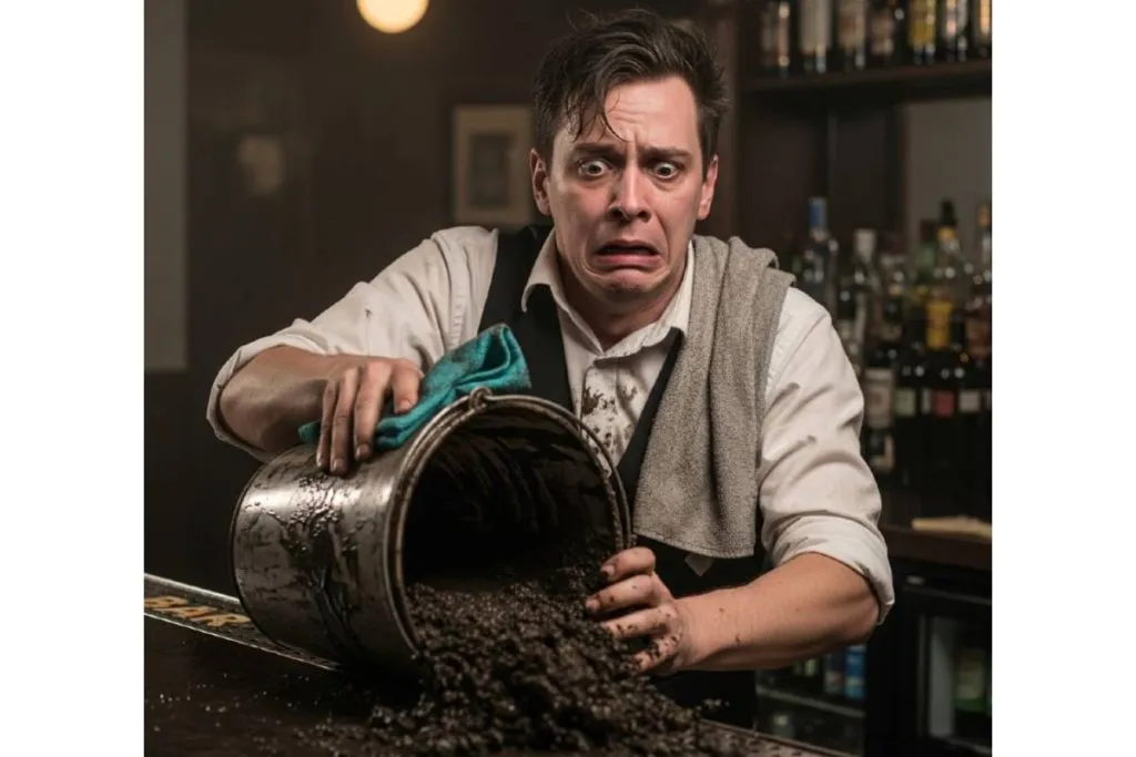 O garçom lhe serve uma xícara que ele esvazia num gole só. Ele então joga o balde para cima, dá um tiro certeiro e em seguida vai embora. Na manhã seguinte ele retorna ao saloon e pede outro café. O dono do bar corre esbaforido pro balcão e diz: