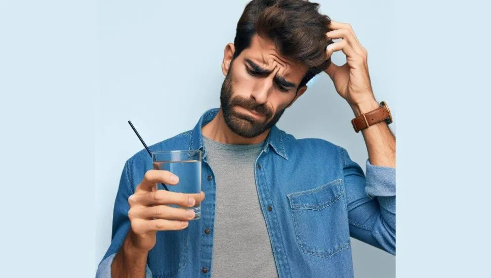 Sem demora, o marido entrou no banheiro com um copo de água e entregou para ela.