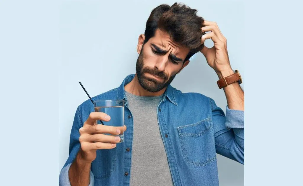 Sem demora, o marido entrou no banheiro com um copo de água e entregou para ela.