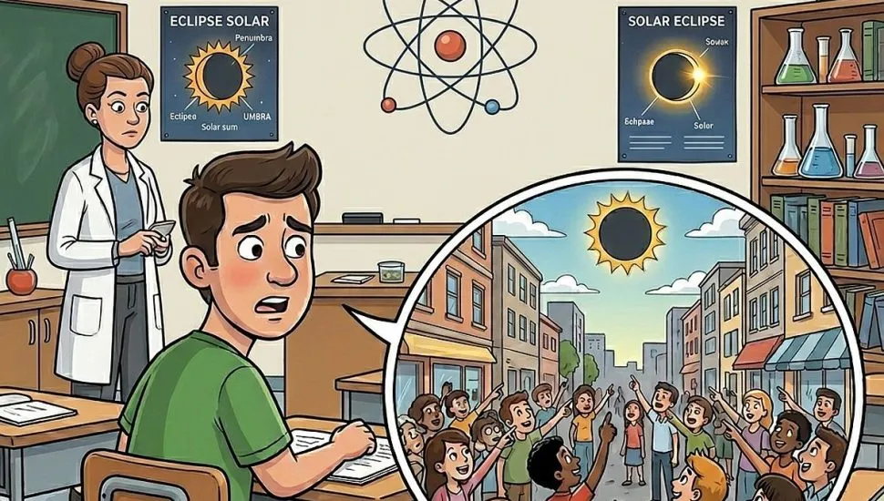 – Luizinho, o que acontece quando há um eclipse solar?