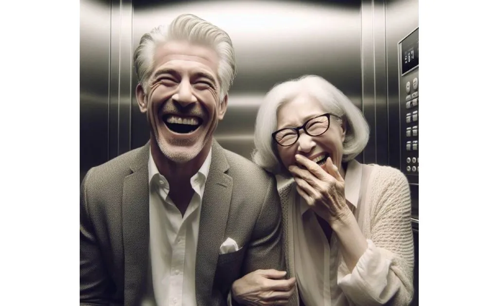 No outro dia, o casal está descendo no elevador para o café da manhã, quando o elevador para em um andar mais baixo e a garota exuberante entra.