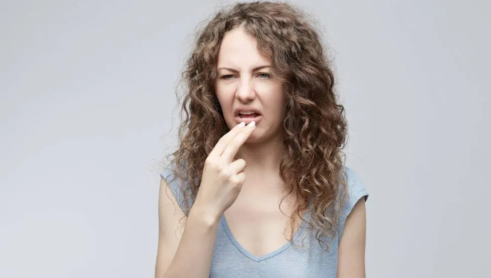 Imagem mostra uma jovem com cara de nojo