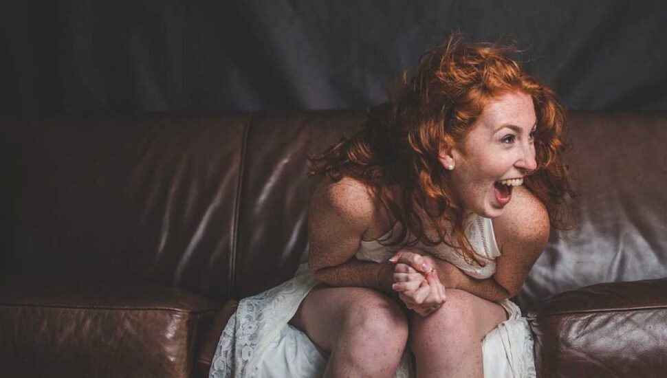 A esposa entra no confessionário de uma igreja, lá em Hollywood, na terra do Tio Sam.
