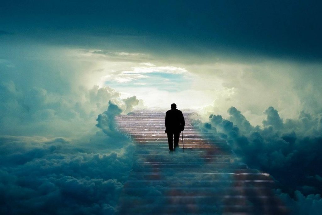 Após um longo período de doença, a mulher morre e chega aos portões do Céu. Enquanto aguardava São Pedro, ela espiou pelas grades e viu seus pais, amigos e todos que haviam partido antes dela, sentados a mesa, apreciando um maravilhoso banquete. Quando São Pedro chegou, ela comentou: Que lugar lindo! Como faço para entrar?