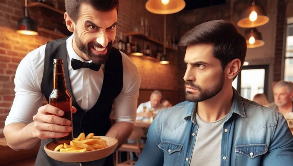 – O quê? – diz o cliente, boquiaberto. – Não é possível! Onde está o dono deste restaurante?