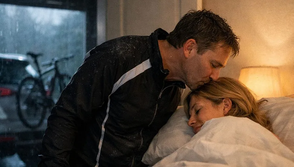 O marido acorda cedinho para ir pedalar. Em silêncio, pega a bike, põe no carro e quando abre o portão da garagem percebe que está frio e chovendo. Desiste e volta pro quarto. Ao chegar, ainda em silêncio, percebe a esposa dormindo tranquilamente. Se aproxima dá um beijo delicado e diz: