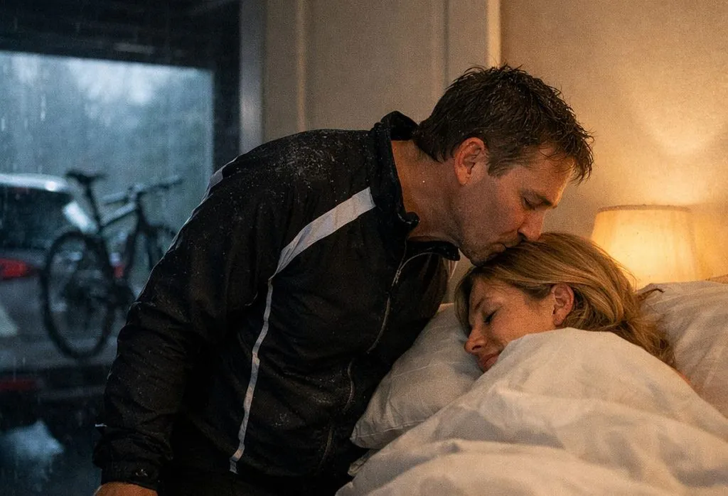O marido acorda cedinho para ir pedalar. Em silêncio, pega a bike, põe no carro e quando abre o portão da garagem percebe que está frio e chovendo. Desiste e volta pro quarto. Ao chegar, ainda em silêncio, percebe a esposa dormindo tranquilamente. Se aproxima dá um beijo delicado e diz: