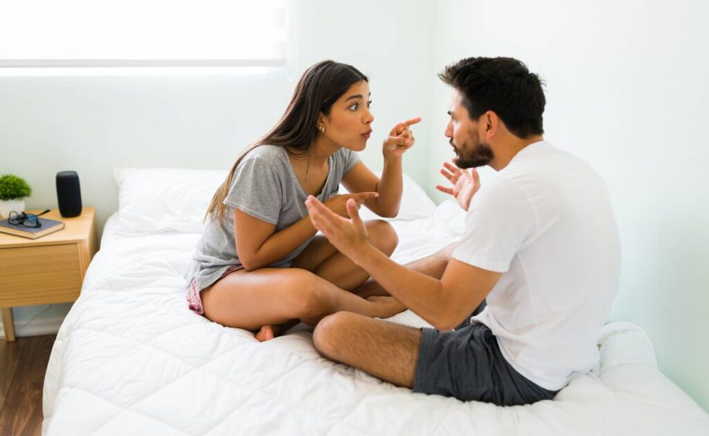 A esposa não está satisfeita com a distância que há entre eles. Ela lembra: