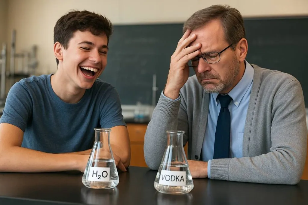 Um professor de química queria ensinar aos alunos, os males causados pelas bebidas alcoólicas e elaborou uma experiência; utilizou um copo com água, outro com whisky e dois vermes.