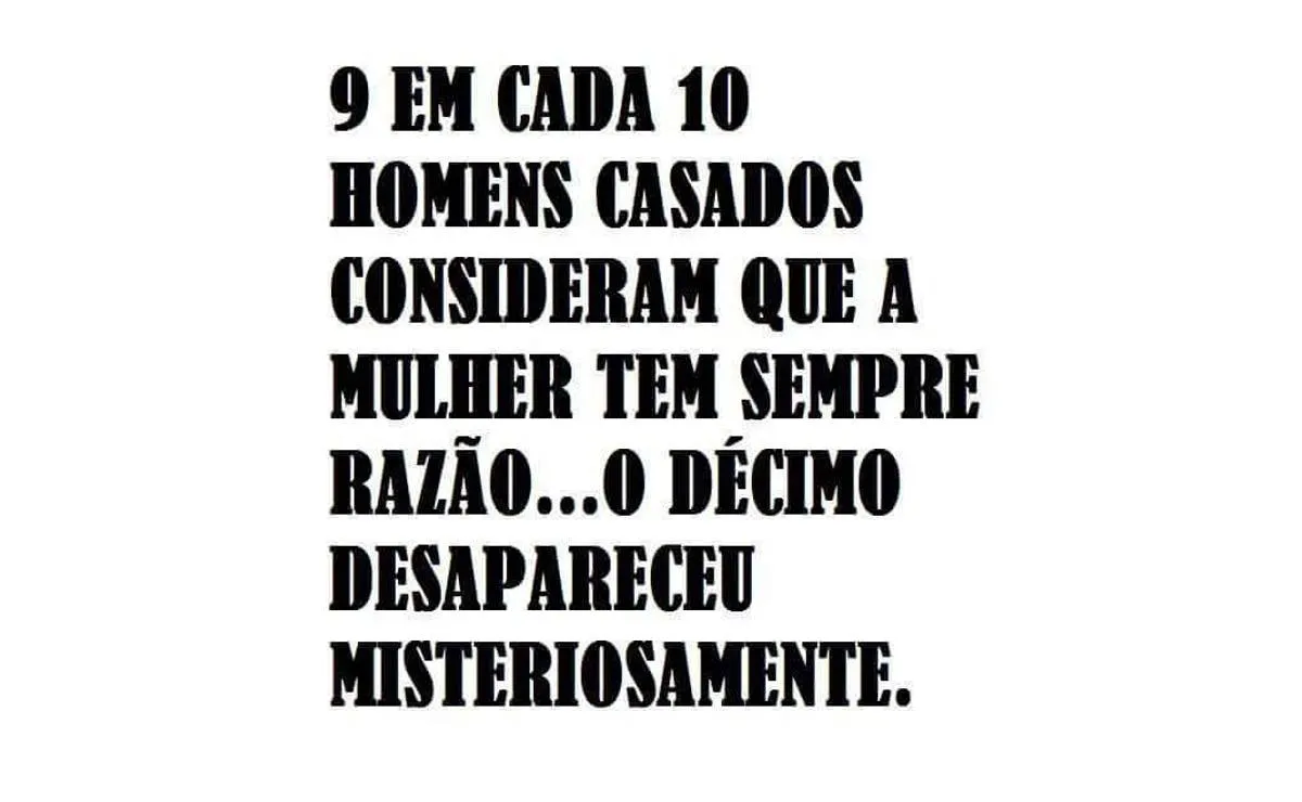 Nove em cada 10 homens casados consideram que a mulher tem sempre razão. O décimo sumiu misteriosamente.