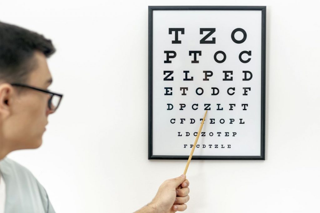 Ele se esforçou, mas não conseguiu ler nada. O médico aponta então para a palavra com as maiores letras e pergunta: