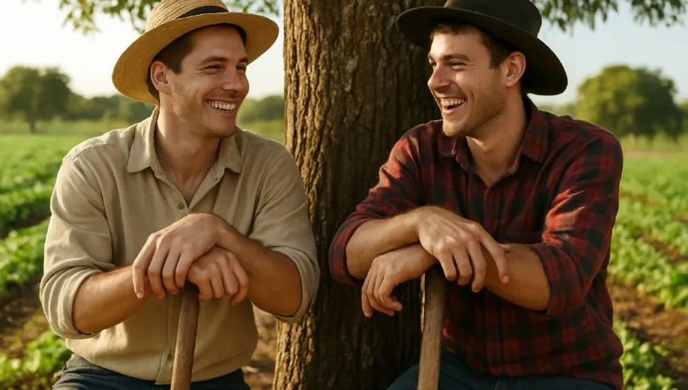 Dois caipiras estão proseando debaixo de uma árvore: